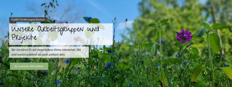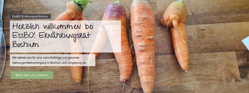 EssBO! Ernährungsrat Bochum ist ein Zusammenschluss verschiedener Initiativen und engagierter Bürgerinnen und Bürger. Wir setzen uns für eine gesunde, regionale und vielfältige Nahrungsmittelversorgung ein. Eine ökologische Ernährungswende vom Acker bis zum Teller.