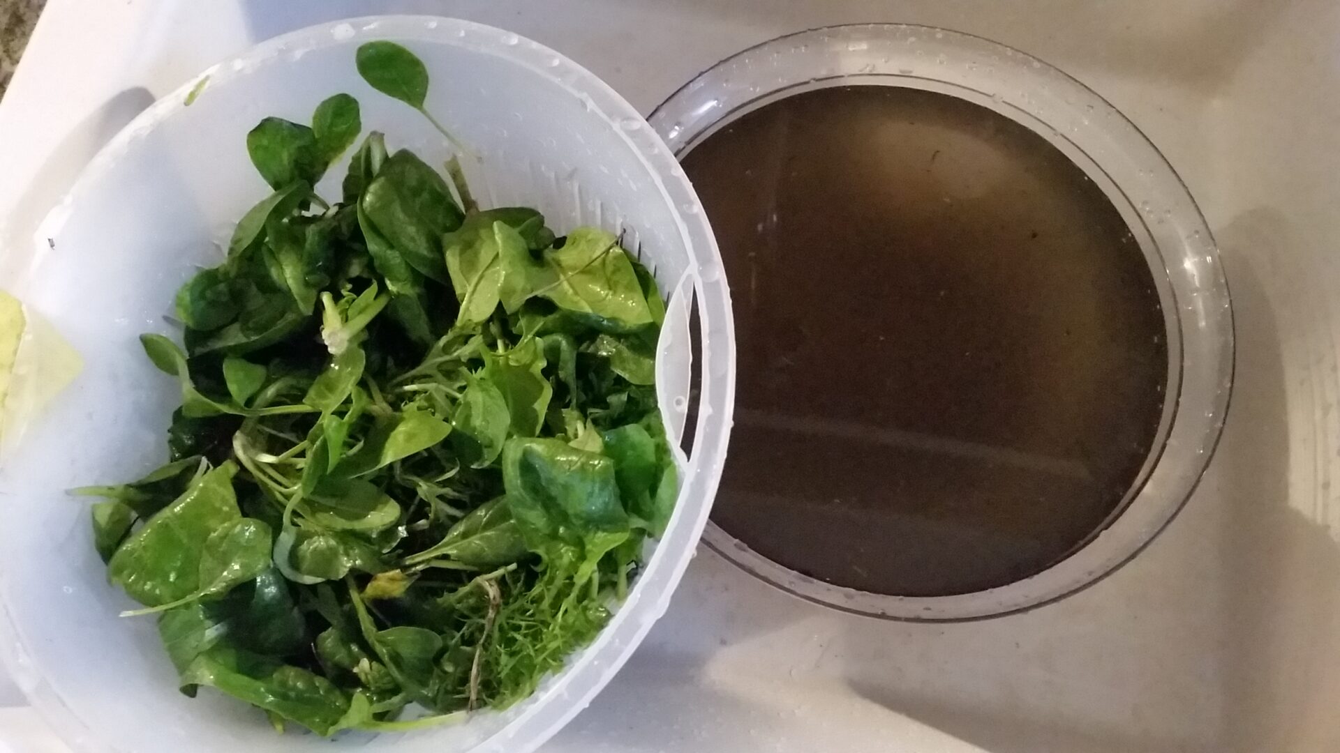 Wenn Feldsalat in echter Erde gewachsen ist, muss man ihn sehr gründlich waschen, da er unten an den Ansätzen gerne den Sand sammelt.